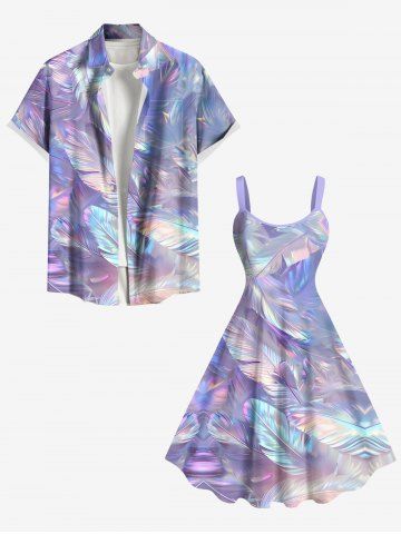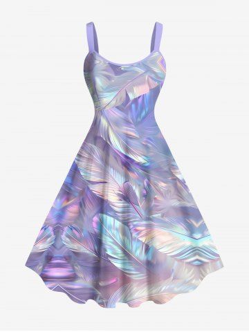 Robe débardeur hawaïenne grande taille à imprimé plumes et néon - Violet Clair - Violet Clair