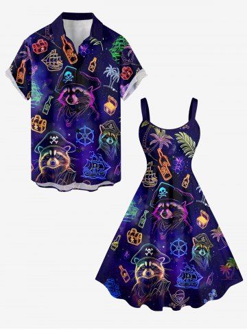 Robe débardeur hawaïenne grande taille à imprimé raton laveur, pirate, voilier, cocotier et galaxie - Concorde - L
