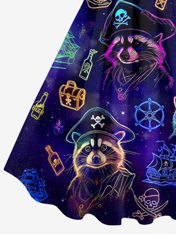 Robes Graphiques > Robe débardeur hawaïenne grande taille à imprimé raton laveur, pirate, voilier, cocotier et galaxie