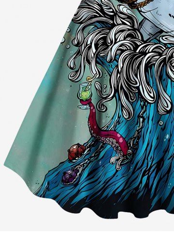 Robes Graphiques > Robe débardeur hawaïenne grande taille à imprimé requin, crâne et vagues