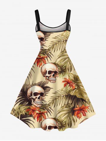 Robes Graphiques > Robe débardeur hawaïenne grande taille à imprimé tête de mort, feuilles tropicales, hibiscus et fleurs