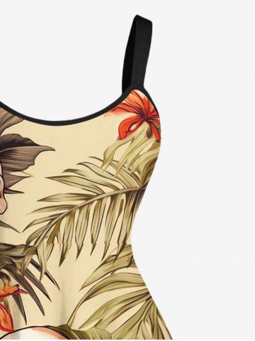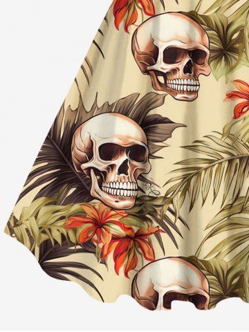 Robe débardeur hawaïenne grande taille à imprimé tête de mort, feuilles tropicales, hibiscus et fleurs - Café Lumière - M