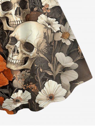 Robe débardeur hawaïenne grande taille à imprimé têtes de mort et fleurs - Brun - Brun