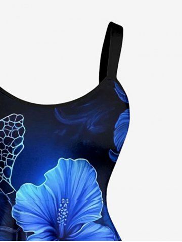 Robe débardeur hawaïenne grande taille à imprimé tortue et hibiscus - Bleu Profond - 3x