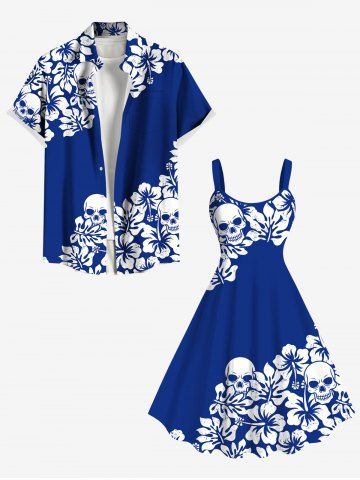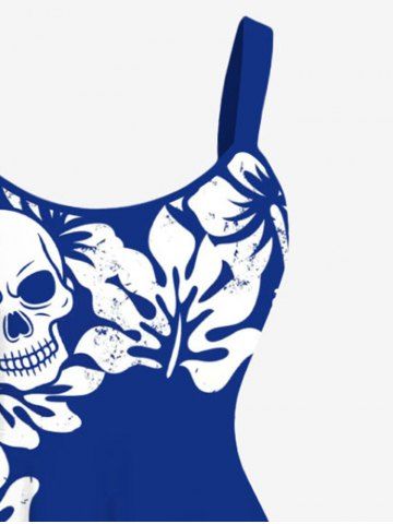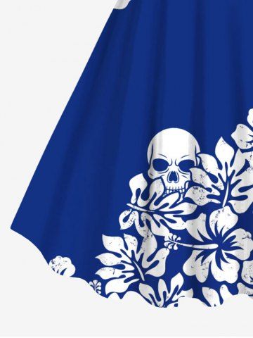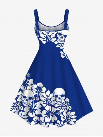 Robe débardeur hawaïenne grande taille à imprimé tropical, motif tête de mort, hibiscus, feuilles et fleurs - Bleu Profond - Xxs