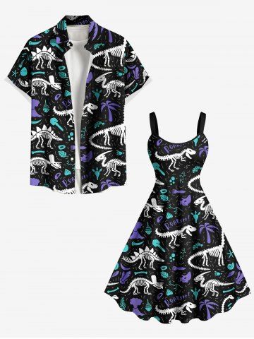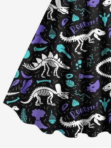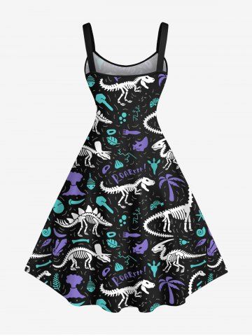 Robes Graphiques > Robe débardeur hawaïenne grande taille pour Halloween, motif feuilles de cocotier, poisson, dinosaure et squelette
