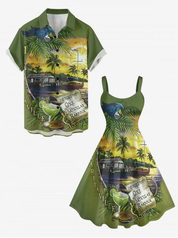 Robe débardeur hawaïenne imprimée cocotier, perroquet et bateau à jus de fruits grande taille - Plant Green - M