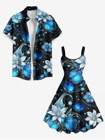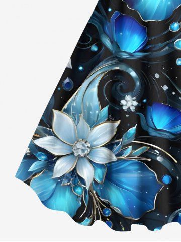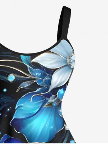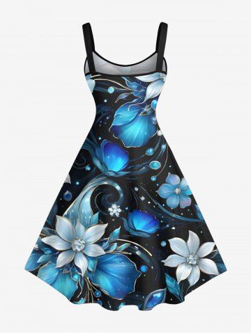 Robes Graphiques > Robe débardeur hawaïenne trapèze grande taille à imprimé floral et feuilles galaxie