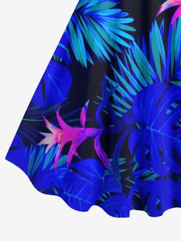 Robe Débardeur Imprimée à Fleurs et Feuilles Tropicales Grande Taille - Bleu - Bleu