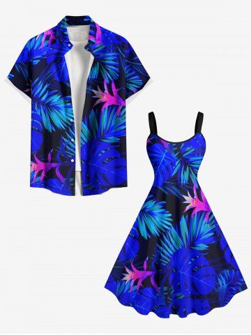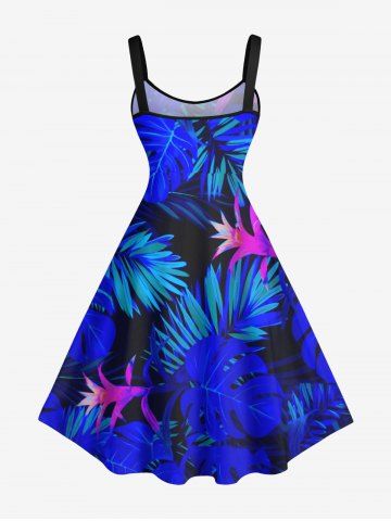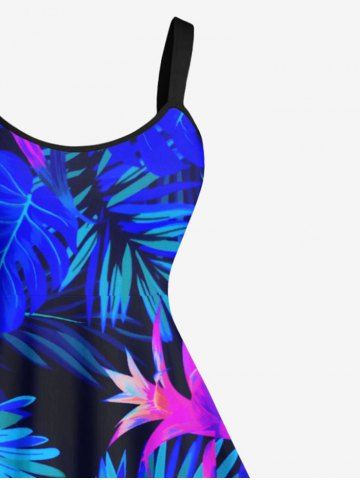 Robe Débardeur Imprimée à Fleurs et Feuilles Tropicales Grande Taille - Bleu - Bleu