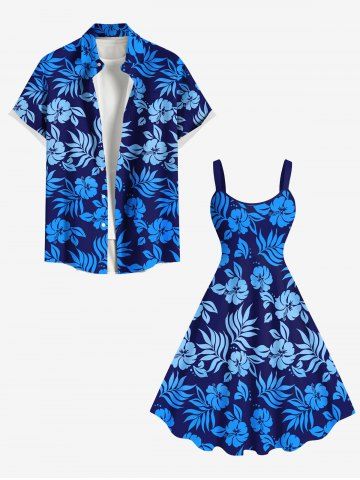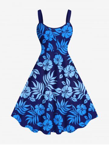 Robe Débardeur Imprimée à Fleurs et Feuilles Tropicales Grande Taille - Bleu - Bleu