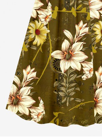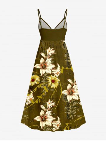 Robe débardeur trapèze à imprimé fleurs et branches hawaïennes grande taille - Olive Verte - 3x
