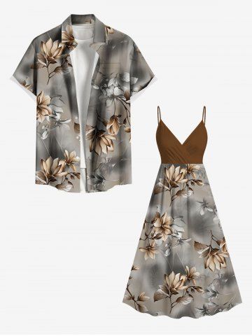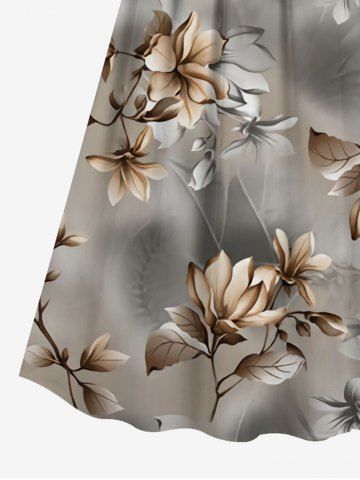 Robe débardeur trapèze à imprimé floral et feuilles ombré grande taille, style hawaïen, cache-cœur. - Brun - Brun