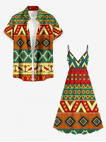 Robe débardeur trapèze à imprimé géométrique ethnique grande taille, style hawaïen, cache-cœur. - Orange Foncé - 5x