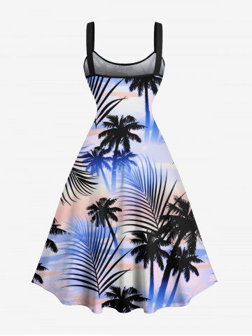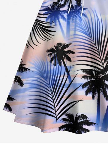 Robe débardeur trapèze à lacets grande taille avec imprimé feuilles tropicales et cocotiers, ciel ombré, style hawaïen - Bleu - Bleu