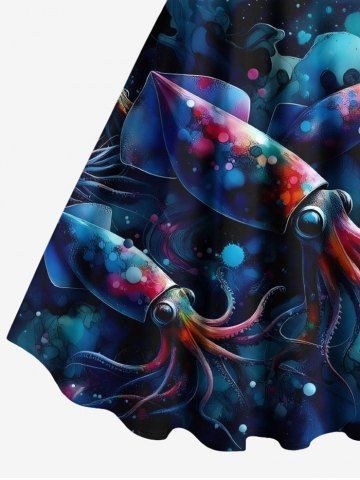 Robes Graphiques > Robe débardeur trapèze grande taille à imprimé calmar et montagnes hawaïennes