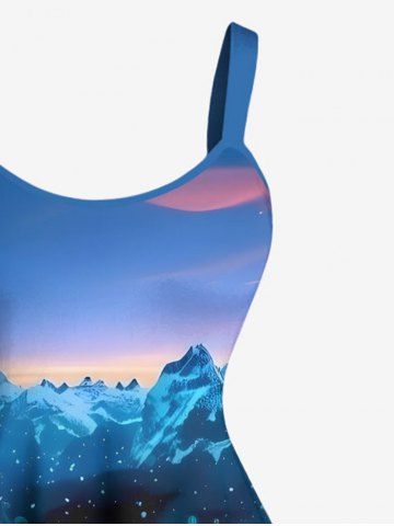 Robe débardeur trapèze grande taille à imprimé calmar et montagnes hawaïennes - Bleu Profond - Xxs