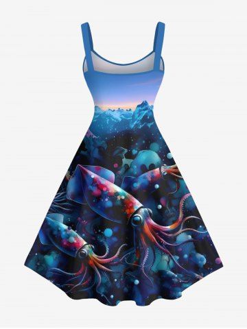 Robes Graphiques > Robe débardeur trapèze grande taille à imprimé calmar et montagnes hawaïennes