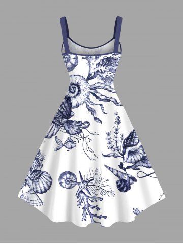 Robes Graphiques > Robe débardeur trapèze grande taille à imprimé coquillage, corail et étoile de mer, créatures marines d'Hawaï