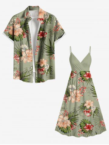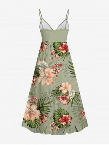 Robe débardeur trapèze grande taille à imprimé floral tropical et hibiscus, style hawaïen, cache-cœur - Vert Clair - Vert Clair