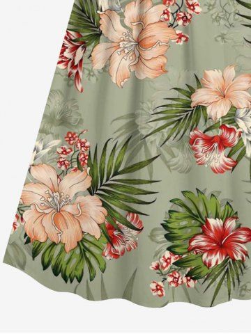 Robe débardeur trapèze grande taille à imprimé floral tropical et hibiscus, style hawaïen, cache-cœur - Vert Clair - Vert Clair