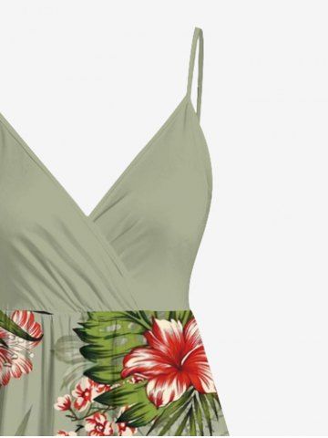 Robe débardeur trapèze grande taille à imprimé floral tropical et hibiscus, style hawaïen, cache-cœur - Vert Clair - Vert Clair