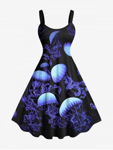 Robes Graphiques > Robe débardeur trapèze grande taille à imprimé méduses ombré et créatures marines hawaïennes