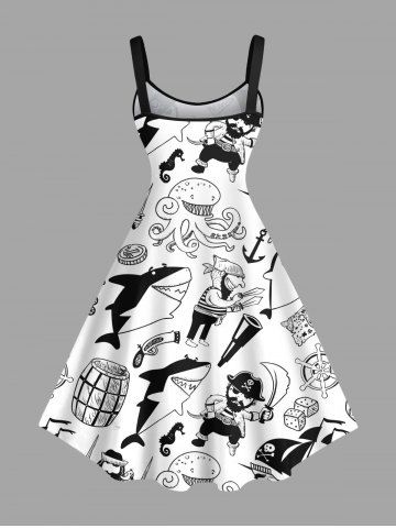 Robe débardeur trapèze grande taille à imprimé requin, ancre et pirate, style croisière hawaïenne - Blanc - Blanc