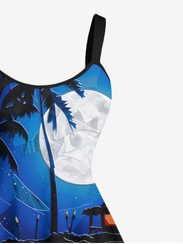 Robe débardeur trapèze grande taille à imprimé tortue, vague, cocotier et lune, motif galaxie ombrée, créatures marines d'Hawaï - Multi-a - L