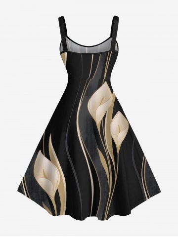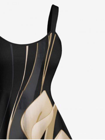 Robe débardeur trapèze hawaïenne à imprimé lys grande taille - Noir - Noir