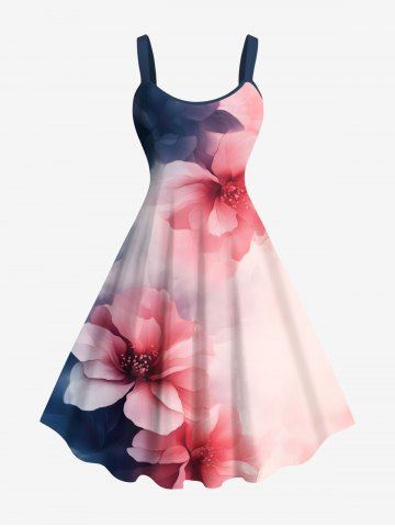 Robes Graphiques > Robe débardeur trapèze hawaïenne grande taille à imprimé floral aquarelle ombré