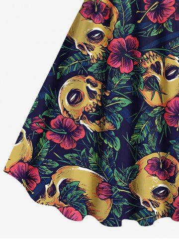 K*****i5Skull Tropical Leaf Hibiscus Flower Print Plus Size Matching Hawaii Beach Outfit For CouplesColor: DEEP GREENperfect for our cruise with the family!