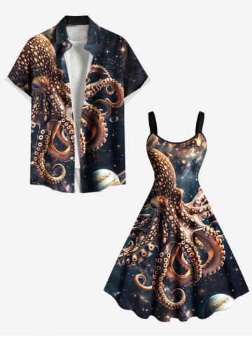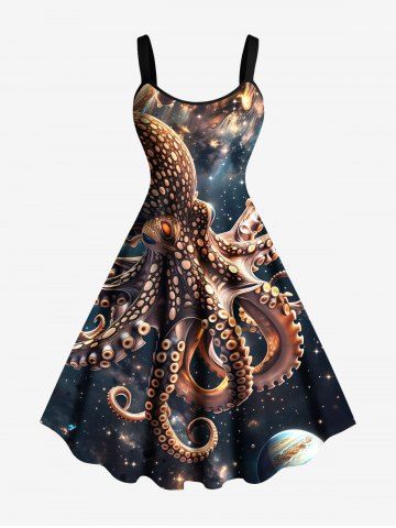 Robes Graphiques > Robe débardeur trapèze hawaïenne grande taille à imprimé poulpe, planète et galaxie