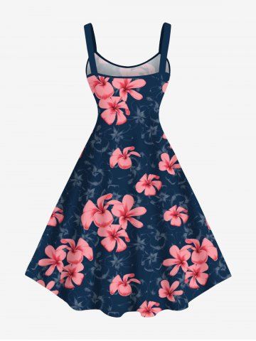 Robe Débardeur Trapèze Imprimée Feuilles et Fleurs Grande Taille - Bleu - Bleu