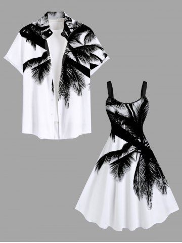 Robe Décontractée Ligne A Cocotier Imprimé de Grande Taille - Blanc - Blanc
