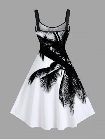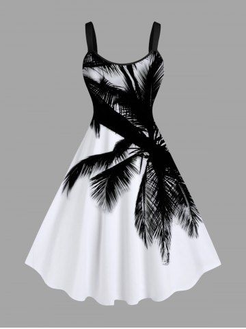 Robe Décontractée Ligne A Cocotier Imprimé de Grande Taille - Blanc - Blanc