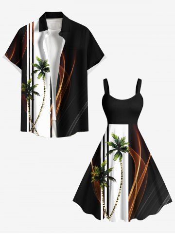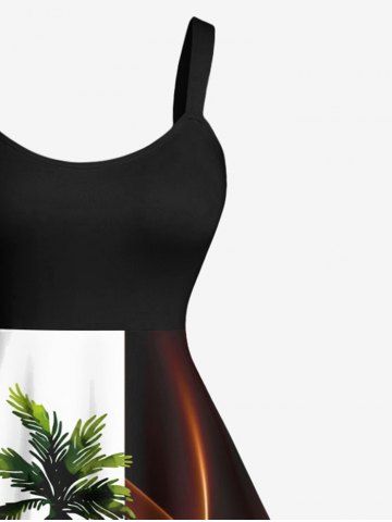 Robe Drapée sans Manches à Imprimé Cocotiers à Deux Tons Grande Taille - Noir - Noir
