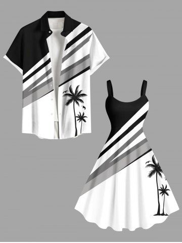 Robe Drapée sans Manches à Imprimé Cocotiers Grande Taille - Blanc - Blanc