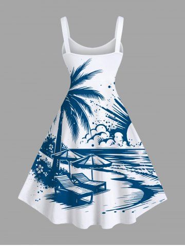 Robe Éponge Underwear Professionnelle Arbre de Noix de Coco Imprimé de Grande Taille avec Poches - Blanc - Blanc