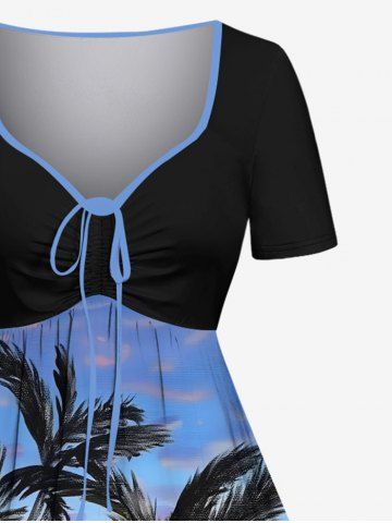 Robe Evasée Ciel Ombré Arbre Noix de Coco Océan Imprimés de Grande Taille - Multi-a - 2x