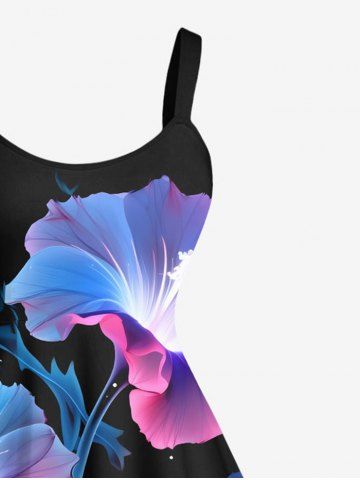 Robe Fleurs et Etoiles Brillantes 3D Imprimées de Grande Taille - Noir - Noir