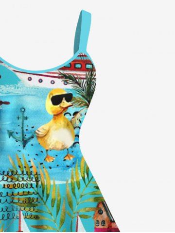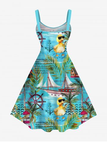 Robes Graphiques > Robe Grande Taille Étanche Imprimé Frangé et Feuille Tropicale