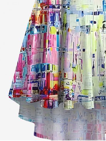 Robe Haute Basse à Bretelle Peinture à L'Huile Imprimée en Blocs de Couleurs de Grande Taille - Multi-a - 6x