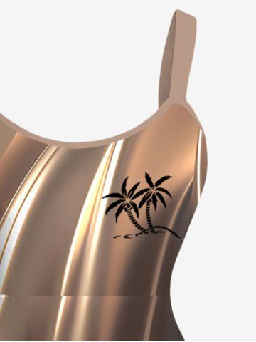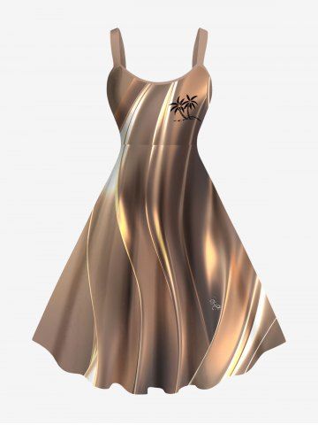 Robe Hawaï 3D Arbre Noix de Coco et Lumière Imprimés de Grande Taille à Paillettes - Café - Café