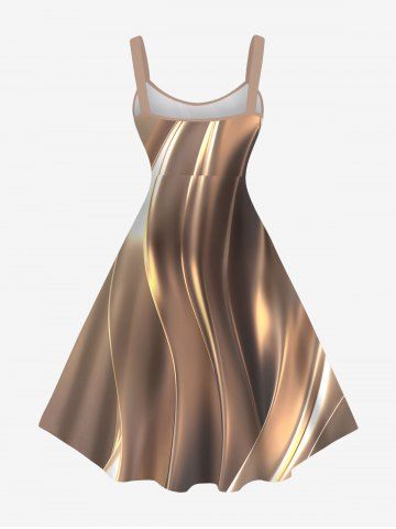 Robe Hawaï 3D Arbre Noix de Coco et Lumière Imprimés de Grande Taille à Paillettes - Café - Café