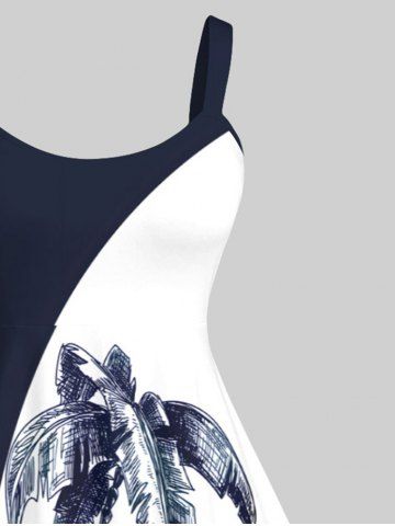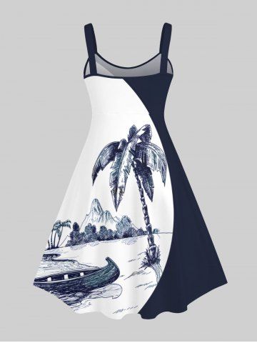 Robes Graphiques > Robe Hawaï en Blocs de Couleurs Montagne Arbre Noix de Coco et Mer Imprimés de Grande Taille