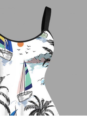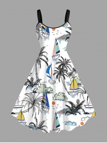 Robes Graphiques > Robe Hawaï Voilier et Oiseau Imprimés de Noix de Coco de Grande Taille