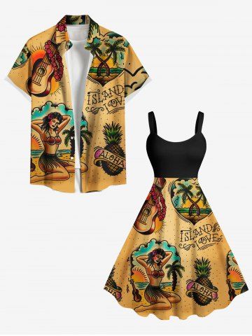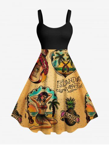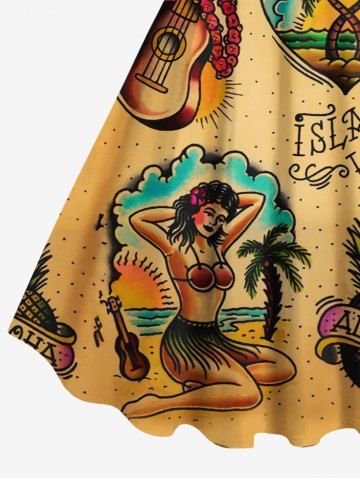 Robe Hawaïen à Imprimé Cocotiers Ananas et Paysage Marin Grande-Taille - Deep Yellow - 4x