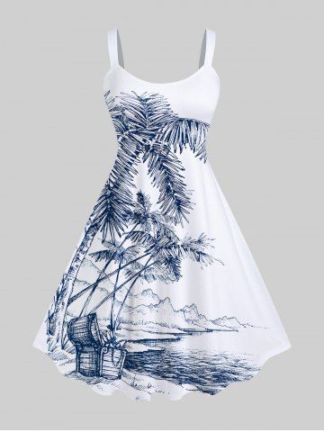 Robes Graphiques > Robe Hawaïen Arbre Noix de Coco et Océan Imprimés de Grande Taille