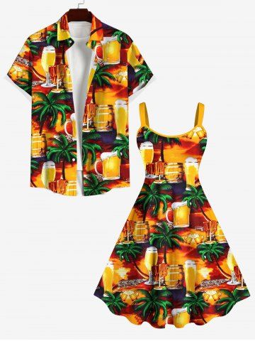 Robes Graphiques > Robe Hawaïen Arbre Noix de Coco et Tasse de Bière Imprimés de Grande Taille